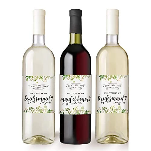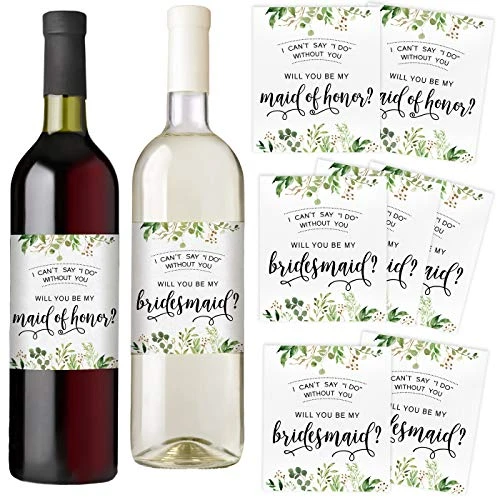 Printed Party Bridesmaid Proposal Wine Bottle Label Gift, Greenery, Set Of 8