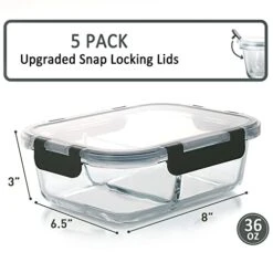 [5-Pack,36 Oz] Glass Meal Prep Containers 2 Compartments Portion Control With Upgraded Snap Locking Lids Glass Food Storage Containers, Microwave, Oven, Freezer And Dishwasher (4.5 Cups)