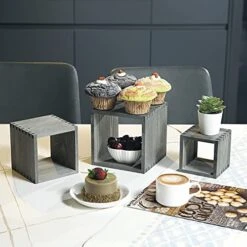 Vintage Gray Wood Cupcake Stand, Decorative Nesting Retail Display Riser, Set Of 3