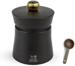 Peugeot Baya Natural Salt Mill Gift Set 3″, Chocolate With Wood Spice Scoop