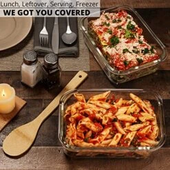 6.5 Cups/ 52 Oz 4 Piece (2 Containers +2 Lids) Glass Food Storage/ Baking Container Set W/Locking Lid – For Storing & Serving BPA Free & Leak Proof – Microwave, Dishwasher, Fridge, Freezer N Oven Safe