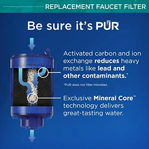 - EASY TO INSTALL – Twist back cover off your PUR faucet water filtration system. Insert new filter and replace the back cover. One PUR faucet filter replacement provides up to 100 gallons of cleaner drinking water, or lasts up to 3 months.
