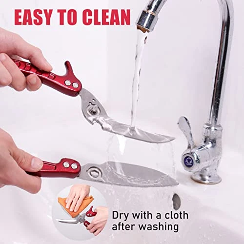 - [MULTIFUNCTIONAL KITCHEN SCISSORS]: Not only is it capable of cutting meat, poultry, fish, bone, beef, pork, seafood, pasta, and pizza; but it is also suitable for pruning green herbs, beans, asparagus, artichokes, and even food bags. Perfect as a gift to Barbecue masters, kitchen workers, gourmet cooks, and super chefs on Birthdays, Weddings, anniversaries, Christmas, Valentine’s Day, Father’s Day, Mother’s Day and home or outdoors activities!