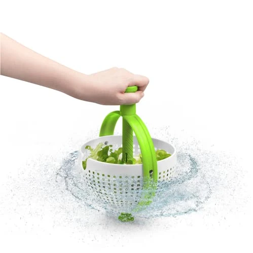 - 【HANDY HANDLE】The handle can be pushed inside the colander to stack it in bowls and keep it out of the way, saving space and making it easy to store. You can use the spinner as a colander by locking the handle, or you can twist it to create the pump-action spin.