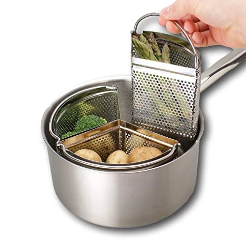 - ✅ PERFECTLY COOKED: Because each of the three sections can be easily placed or removed individually into or from the saucepan, it means that you can cook vegetables for different lengths of time without using multiple pans.