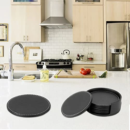 - SAFETY MATERIAL: Leather Coasters are made of high quality PU leather material, eco-friendly, no smell, lightweight, durable, non slip, water resistant.