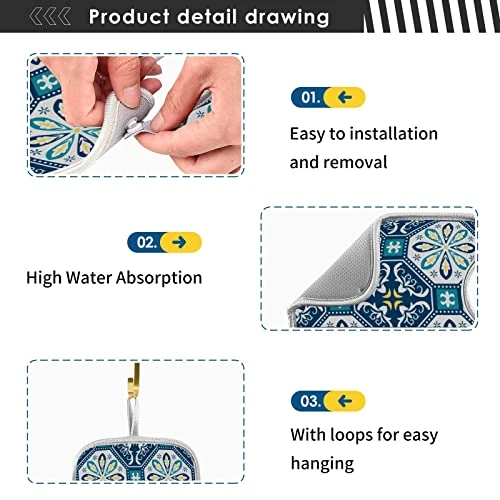 - Wash care:Hand washable/ Machine Washable. There is a hanging loop at the edge of the sink faucet mat splash guard.please let it air dry directly after washing.ElliTarr sink faucet mat have a set of 2 pieces, which is convenient to change and wash.For better use, replace it every 3 days