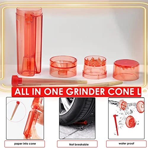 - The unique design of our herb grinder makes it easy to disassemble and assemble, with a built-in funnel and cone storage that holds up to 7 empty cones. Insert the cone into the filling tube, grind and pack the cone within 30 seconds, place the grinder on the funnel through the guide pin, and grind. All this with a simple twis