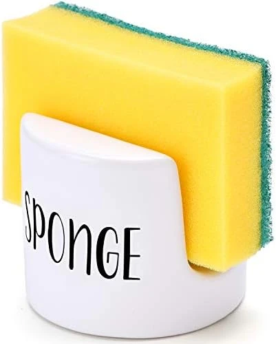 - ✔️【FASHIONED DESIGN】: What a great addition to your kitchen whether your looking to add a little flair to your farmhouse styled decor or would simply like to add some white and blue colors to your kitchen. This sponge holder makes the kitchen look fashionable, tidy, and well put together. Matches all your kitchen decor perfectly.