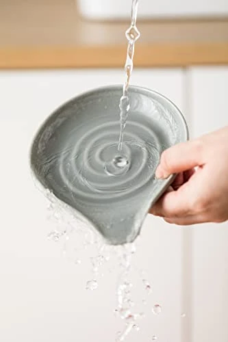- The large round shape ensures that the spoon rest will remain stable during use and features a centered circular depression that accommodates a wide variety of utensils.