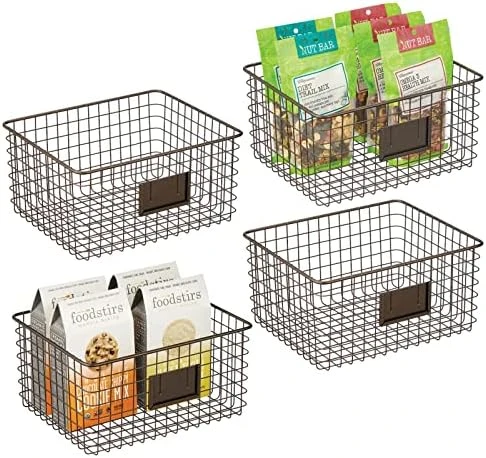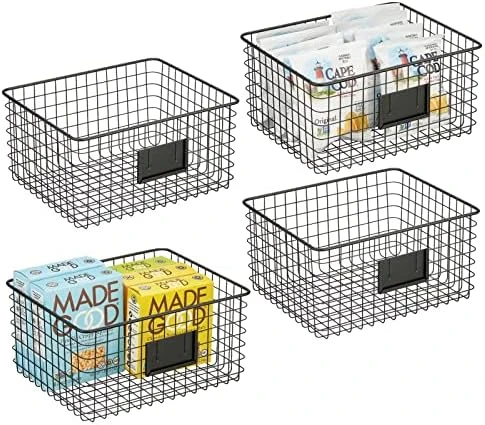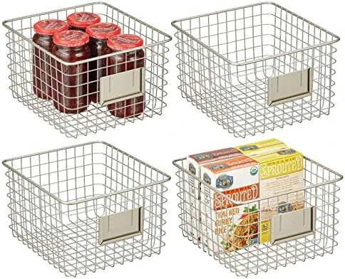 - FUNCTIONAL & VERSATILE: Organize all of your kitchen essentials; Great for dry goods and other kitchen items such as: towels, candles, small appliances and kitchen tools; These also work in the refrigerator or freezer; Classic open wire design offers roomy and easy storage for any room in your home; Use multiple bins side by side for larger spaces or use them individually; Try these in closets, bedrooms, bathrooms, laundry rooms, craft rooms, mudrooms, offices, playrooms, and garages