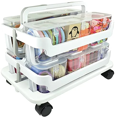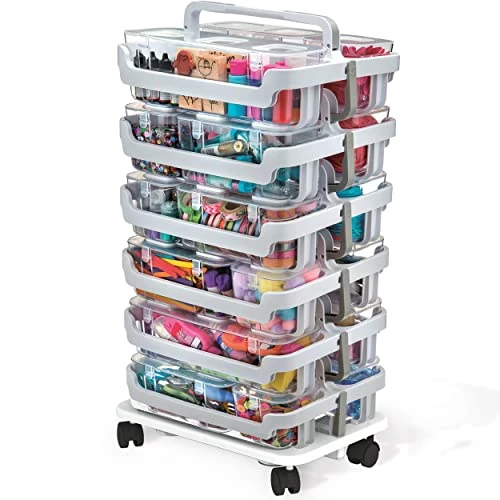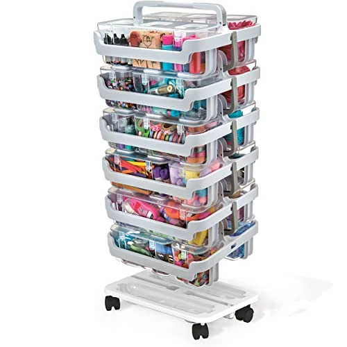 - “Lift & Lock” tabs secure multiple Stackable Caddy Organizers to the wheel base so you can take all your items with you; It’s like putting your entire work room on wheels!
