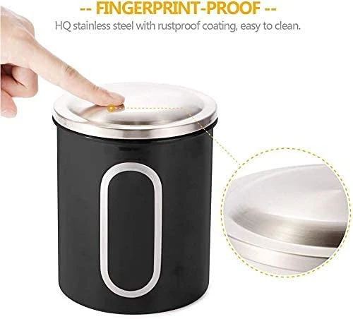 - EASY STORAGE: Silicone gasket makes the stainless steel lid close tightly, which ensures the safety of food inside. The lid is anti-fingerprint. Perfect for store coffee beans, tea, sugar and snacks in your beautiful home and modern kitchen. *Please note that it may take a little effort to open or close the lid, as it is tight to ensure the safety of food inside.