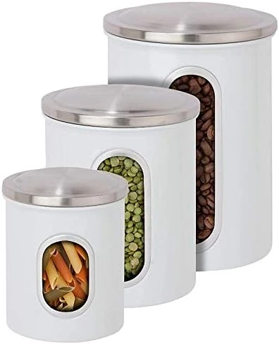 - FOOD SAFE MATERIALS: Made from food safe stainless steel and carbon steel compositely, which protects containers from corrosion, deformation and abrasion. Sturdy, easy to clean and more durable than ceramic canisters. Hand wash recommended.