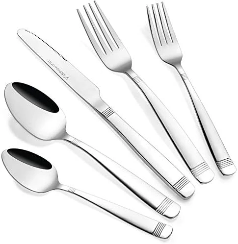 - ERGONOMIC DESIGN & WEIGHT: Apart from adorning your dinner table, elegant flatware set delivers the ultimate dining experience as everyday silverware comfortably in your hand and weighs only as much as it needs to