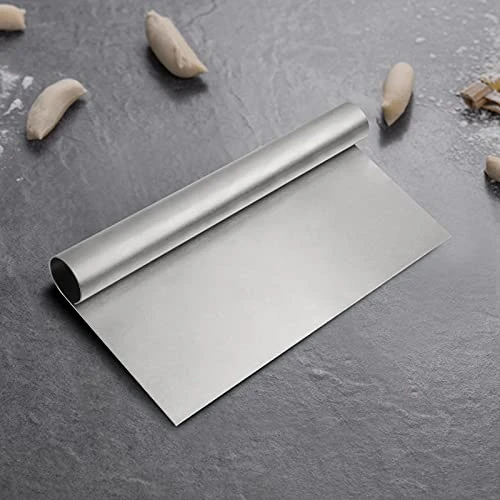 - 【Great For More Than Just Scraping Dough】: Use it to gently chop soft fruits and veggies, avocados, cut even brownies, cut dough for pastries/cinnamon rolls/dinner rolls/pizza/pasta and cookies, scoop up chopped vegetables or herbs to transfer to a pot, clean counters of crumbs and dried dough, smooth out frosting on cakes or use as a mini cake lifter. Lift pie dough, chop nuts, mash cooked beans or hard boiled eggs, temper chocolate, chop grilled chicken, divvy up butter and much more!