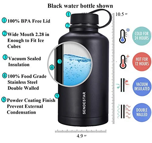 - What You Get: SENDESTAR Water Bottle, Straw Lid, Flex Lid, Spout Lid, 2X Straws, warranty and friendly customer service.