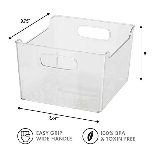 - STORE: Stackable bins maximize space for grocery organization and storage