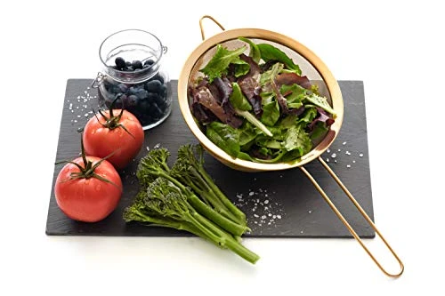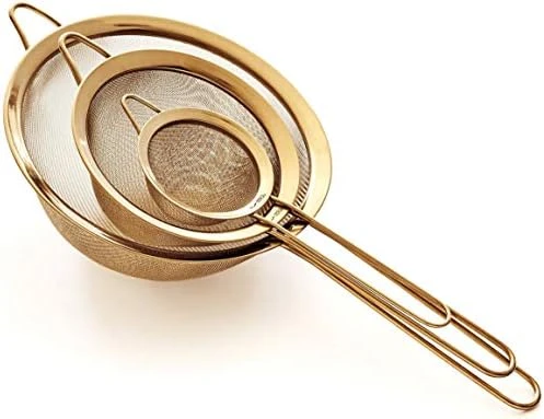 - TITANIUM ECO-FRIENDLY AND STYLISH GOLD COLOR FINISH – our kitchen strainers feature a titanium Physical Vapour Deposition eco-friendly coating. The PVD applied to all our food strainers is the highest quality coating and the entire process is environmentally harmless