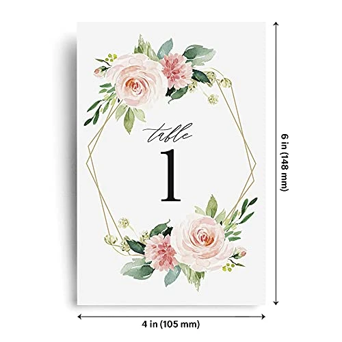 - STYLE: Features a beautiful blush and greenery geometric floral design. These table numbers are sure to add some elegance to your reception, party or event.