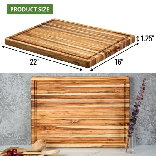 - 𝗞𝗡𝗜𝗙𝗘-𝗙𝗥𝗜𝗘𝗡𝗗𝗟𝗬 𝗦𝗨𝗥𝗙𝗔𝗖𝗘, 𝗦𝗧𝗨𝗡𝗡𝗜𝗡𝗚 𝗗𝗨𝗥𝗔𝗕𝗜𝗟𝗜𝗧𝗬: Beefurni Teak cutting board is made entirely of 𝟭𝟬𝟬% natural Teak wood, providing higher durability than others like bamboo cutting board, plastic cutting board, etc. Our board’s surface is sturdy, ensuring your knife does not get dull over time.