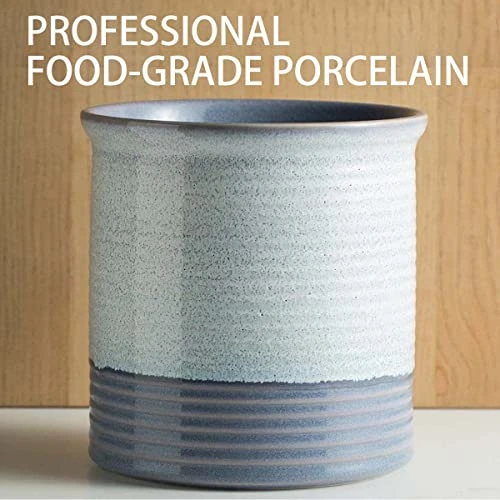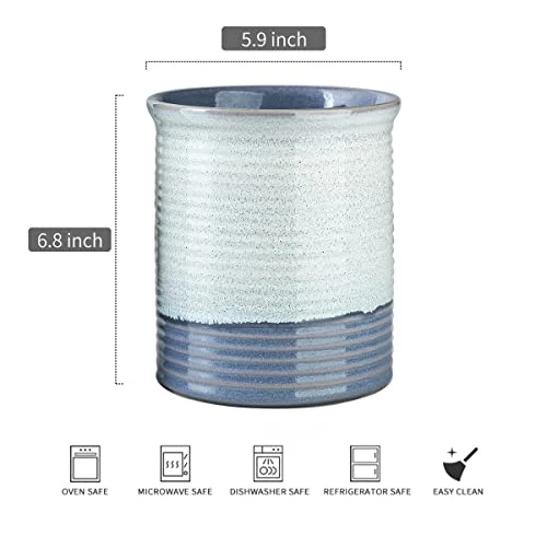 - Easy to Clean: Made of durable and high-class glaze, this ceramic utensil caddy is a long-lasting addition to your kitchen. Thanks to the high-class glaze, you don’t have to worry about getting jam or salad dressing stains. It is easy to clean.