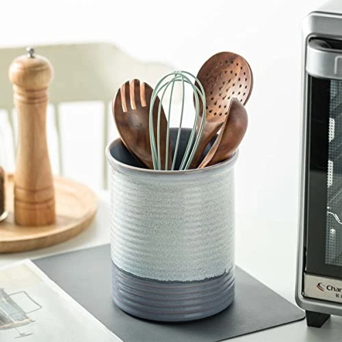- Versatile Ceramic Utensil Holder Caddy: The ceramic uitensil holder suitable for small and medium cooking utensils, keeping utensils handy and findabe. A convenient solution for overflowing kitchen drawers and countertop clutter.