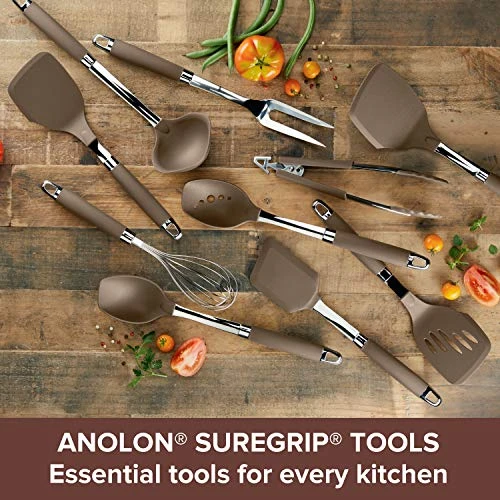 - DURABLE CONSTRUCTION: Sturdy stainless steel neck with Anolon(r) SureGrip(tm) silicone-grip handle