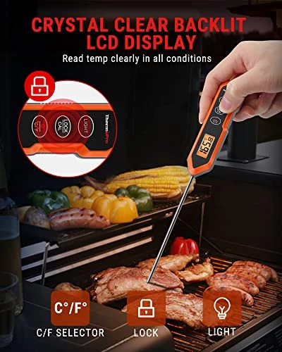 - Lock & Calibration Function: Kitchen thermometer lets you read temperatures safely away from heat by capturing temperatures on the display. The user calibration function extends product life