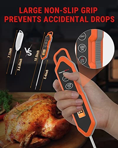 - IPX6 Waterproof & Large Non-Slip Grip: Long and slender body features a non-slip grip to avoid accidental drops. The IPX6 rating means you can safely clean probe thermometer under running water