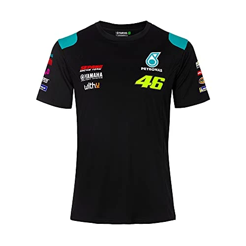 - Short-sleeved polyester t-shirt replica of the Team Petronas SRT Valentino Rossi races in MotoGP with and part of the Petronas VR46 collection. The shirt shows the marks of sponsors such as Yamaha Factory Racing, WithU, Barracuda, Green Power, PBR, Flyme and Michelin on the chest and sleeves.