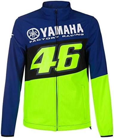 - Jacket part of Yamaha VR46 collection 2020 in cotton with large polyester mesh inserts. The model is made of polyester with regular fit and is windproof and water repellent. It has a full zip and two pockets at the waist. On the chest there is a large number 46 Valentino Rossi races with in MotoGP and Yamaha Factory Racing mark, repeated on the back.