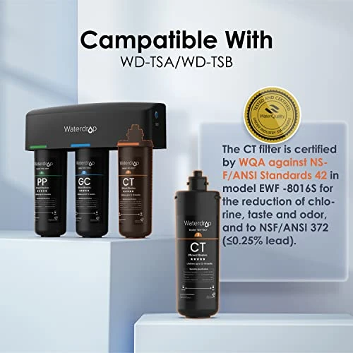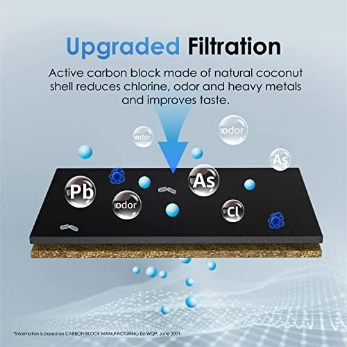 - 【Enhanced filtration】 The under sink replacement CT filter tested and certified by WQA against NSF/ANSI 42 standards, which can effectively reduce chlorine, bad taste and odor, improves the taste of water. Added KDF prohibits harmful impurity from breeding, providing you with safer and cleaner drinking water. [1]