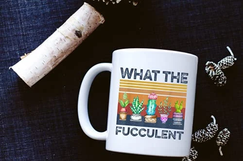 - 🎁 [PERFECT GIFT ] What The Fucculent Retro Vintage Cactus Succulent Plant Gardening Gift Ceramic Coffee Mug, Cup 11oz, 15oz