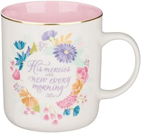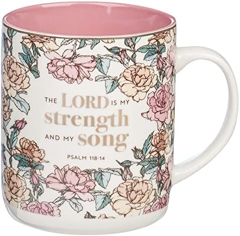 - BEAUTIFUL COFFEE CUP: Delight Christian women of all ages with this pretty floral coffee mug that features floral blooms in shades of red, orange and cream. Inside is a coordinating warm earthy pink. Metallic gold rim, accents, and Proverbs 31:26 Bible verse complete this lovely scripture gift for women.