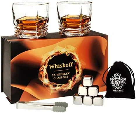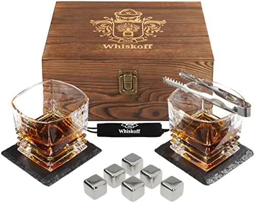- 🥃 𝗖𝗨𝗦𝗧𝗢𝗠𝗘𝗥 𝗦𝗘𝗥𝗩𝗜𝗖𝗘 𝗚𝗨𝗔𝗥𝗔𝗡𝗧𝗘𝗘: We make things easy for you. Our scotch whiskey glasses set is beloved by customers, and we provide broken glass replacement policy. Just choose WHISKOFF’s whiskey glasses and stones wooden box set and enjoy yourself or gift to loved ones.