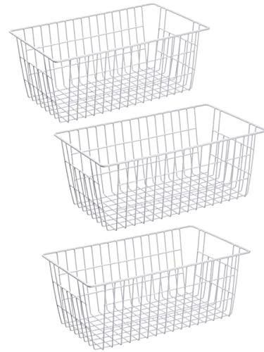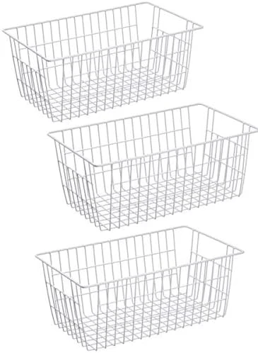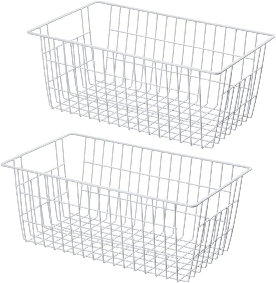 - PORTABLE- Integrated carry handles of this freezer organizer bins make it easy to transport around the home for organizing and decorating. The stackable function enable to maximize space when empty. The wire baskets for freezer adopt open design to make you view and grab the items in the basket easily