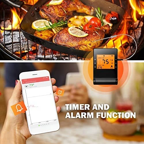 - 【Temp graph and Timer】The temperature history graph of all probes help you better understand trends and temperature fluctuations throughout the entire cook, and the thermometer for cooking uses an algorithm, to estimate how many minutes left to reach its target temperature, which helps plan your meal well.