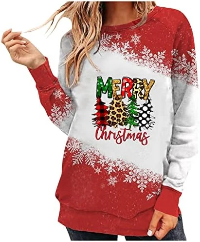 Womens Crewneck Sweatshirt Fall Fashion Sweatshirts Long Sleeve Christmas Print Loose Tops Pullover Top Streetwear