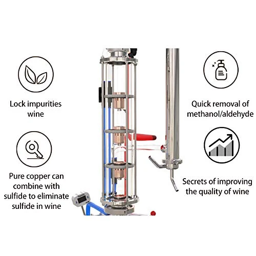 - 【Special Power】A “Spirit Dance” crystal distillation column is capable of yielding near the theoretical maximum alcohol content, in excess of 95%, while also giving better separation between the ethyl alcohol and the esters and ketones in the heads or the heavy fusel alcohols in the tails. Greatly improve wine quality, limpidity wine.